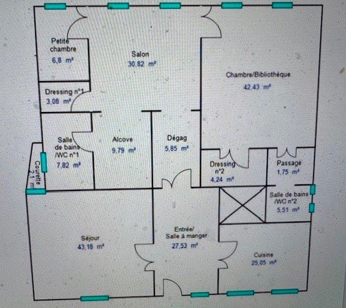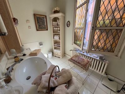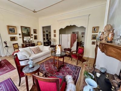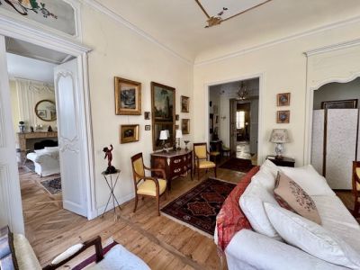 Magnifique appartement de caractère XVIIIe, dans le centre historique de FIGEAC (LOT) avec son jardin, parquets superbes, moulures, hauts plafonds, grande élégance . Deux sorties indépendantes, petit jardin arboré, ravissant, avec point d'eau et électricité. L'appartement de 213, 85 m2 Loi carrez , se compose , en rez de rue, de plain-pied, très pratique , d' une entrée indépendante avec cave à vins, buanderie, coin lave mains, wc, cuisine aménagée, escalier en acier (rajoutant env 20m2 de plus ), entrée principale par un perron ouvrant sur un immense hall 27, 53 m2, grand salon séjour, parquets, cheminée 43,18 m2, vaste cuisine équipée et aménagée 25 m2, magnifique salon avec parquets, peintures murales en relief, cheminée , dressing, alcove chambre (30, 82 m2 +9, 79 m2 +3, 08 m2), salle de bains spacieuse 7, 82 m2, une chambre d'enfants ou boudoir 6, 8 m2, une grande pièce salon chambre avec parquets à la francaise, cheminée, bibliotheque,42, 83 m2, dressings 4, 24 m2, salle d'eau douche italienne récente 5, 51 m2. Ravissant jardin de 72 m2 à proximité . Tous commerces et commodités aux pieds de l'appartement . charme fou, élégance rare .