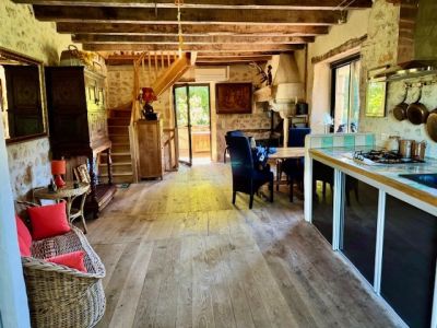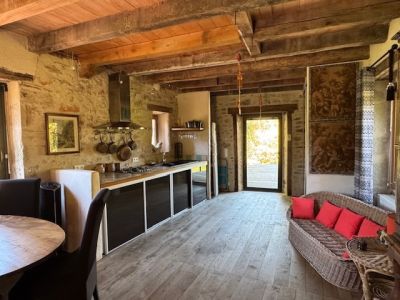 Ravissante maison en pierres , ancien moulin, datant de 1800 , restaurée en 2015, charme fou, sur un terrain de plus de 1 ha 2, avec jacuzzi . Environnement exceptionnel, rivière, bief en piscine naturelle, beau terrain . La maison d'env 117 m2 se compose d'un séjour de 37 m2 ,parquet, poutres, pierres apparentes, cuisine équipée, rangements, donnant sur une immense terrasse de 33 m2, cheminée cantou avec insert, double vitrages, au dessus une chambre 17 m2, rangements, salle de bains 7 m2, ravissant "bolet", en rez de jardin une grande pièce chambre salon de musique 25 m2 rangements, salon donnant sur une belle terrasse arrière 24 m2, terrasse 36 m2 ouverte sur la nature et le bief, salle d'eau douche italienne, 10 m2 .