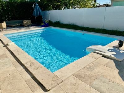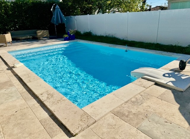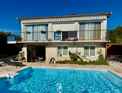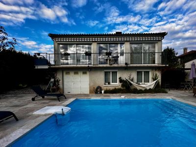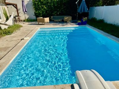 Maison lumineuse, piscine récente chauffée pompe à chaleur 5 X 4, Desjoyaux, chlore , éclairage jardin, quartier calme, plein sud,  navette gratuite, commerces a proximite . Chauffage gaz de ville - Assainissement collectif - Double vitrage .